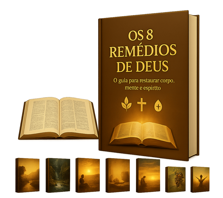 O Guia “Os 8 Remédios de Deus” te mostra, de forma simples, prática e profundamente visual, como recuperar sua energia, sua paz interior e o equilíbrio emocional —